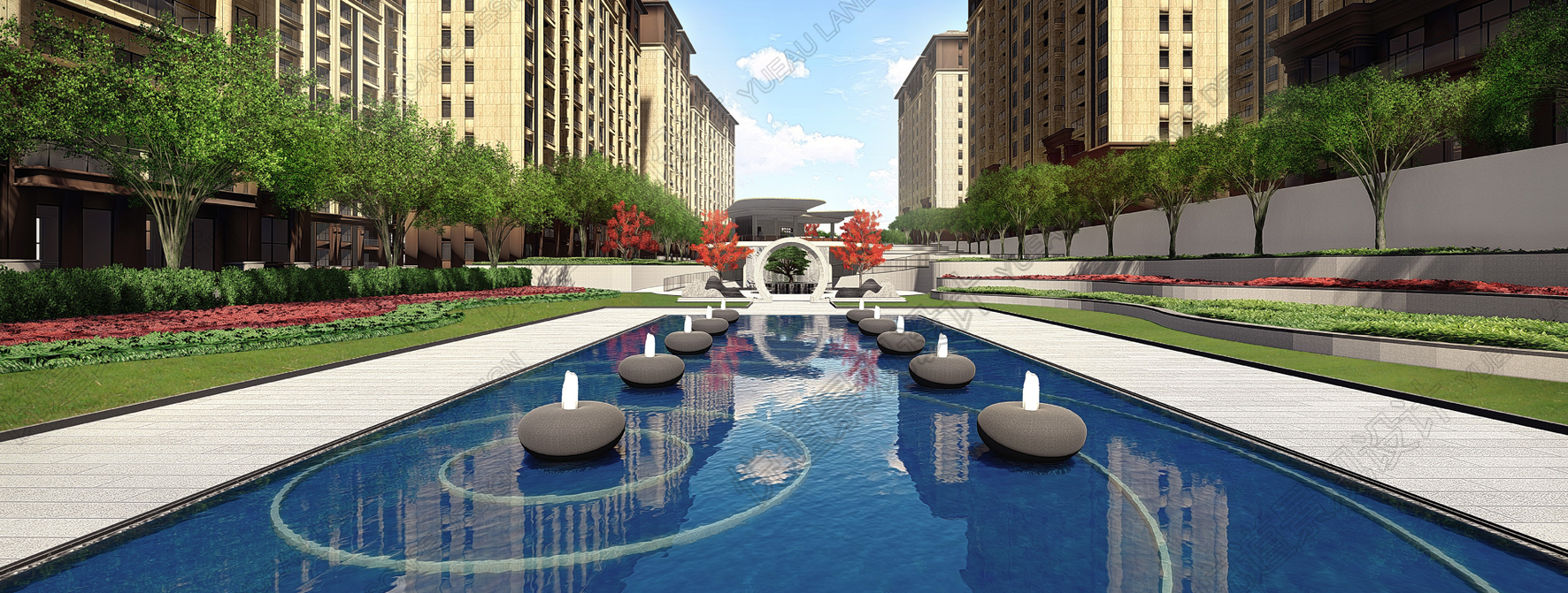 通过艺术的手法,将新中式景观中的“璧山新八景”运用到三汇-泷悦府的景观设计中。 匠心打造山水墨画与轻奢享受的人居空间。