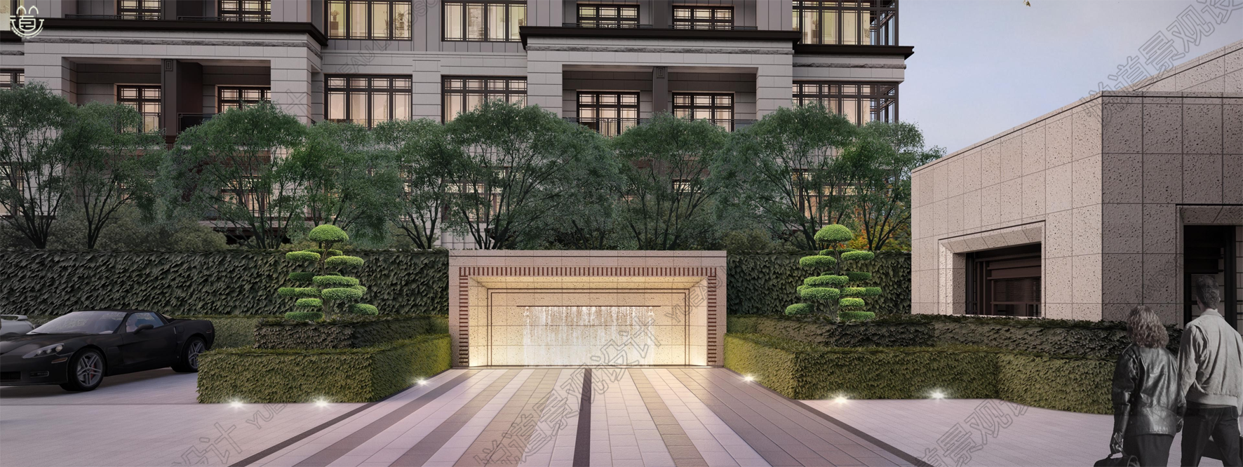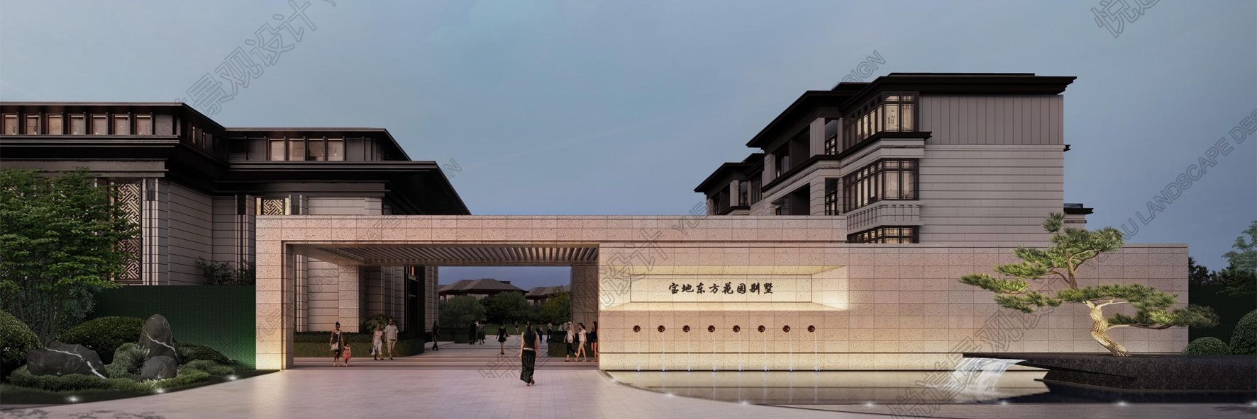 Land issue of Oriental garden villa, the practice of gate we remove a lot of trivial new Chinese style element, with a heavy stone and the design of structured, with the guard widening door interface, show exalted feeling massiness, difference with general average house, and considering the foreign sales department in the future the supermarket function, so the closed door of the gate installed in the side,Create a hotel-style entry space.