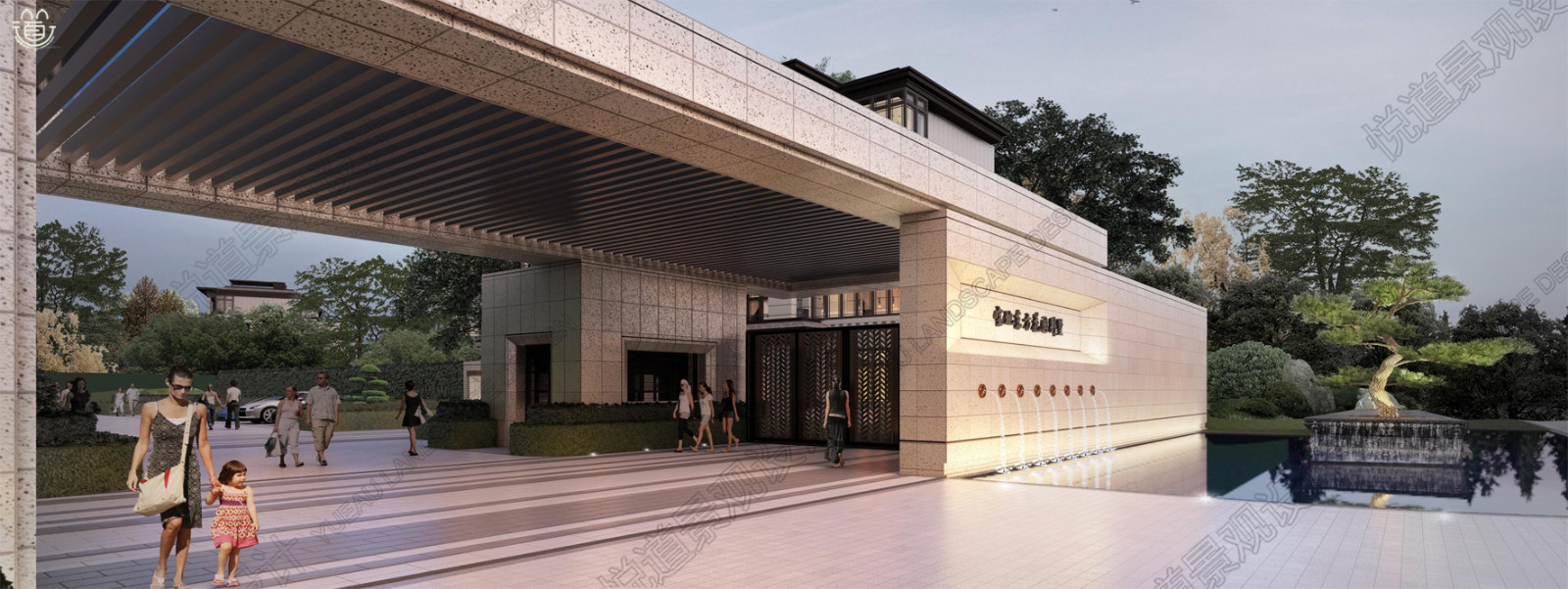 宝地东方花园别墅一期,我们将大门的做法去掉了很多琐碎的新中式的元素,用厚重的石材跟门卫一起规整的设计,拉大大门的界面,体现尊贵感厚重感,区别与一般的普通住宅,而且考虑到售楼处未来超市对外的功能,所以大门的封闭性的门设置在侧面,打造酒店式的入户空间。