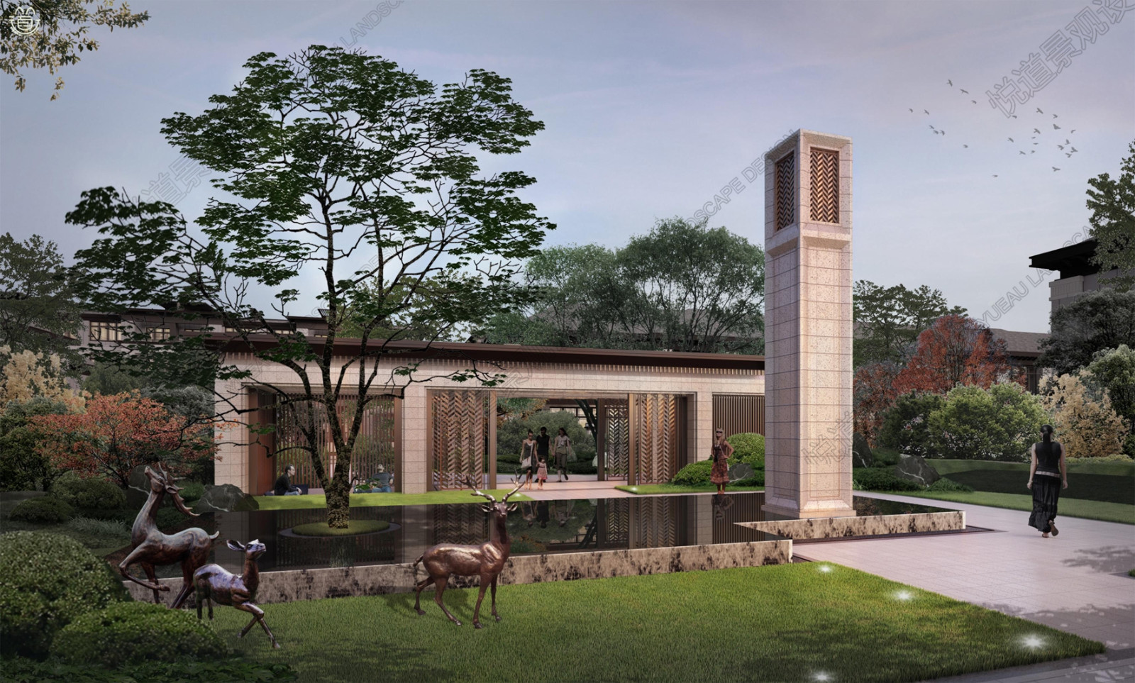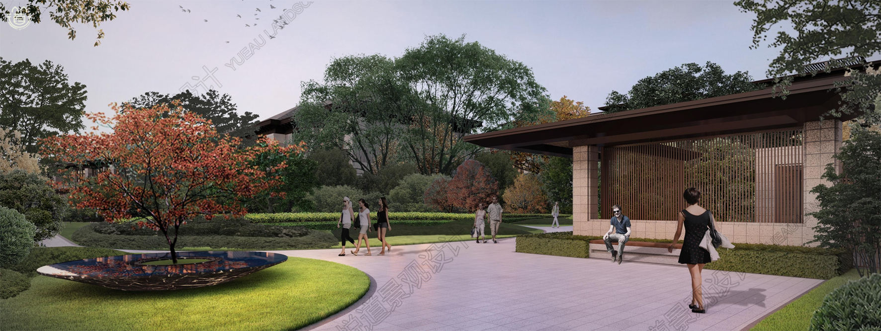 中轴结合出地面通风井设计景观塔,再度强化该位置的标识印记,还是用大量的石材厚重的去凸显,当中轴线被大量通风井、下沉庭院和地下通道台阶占据核心位置时,景观设计不是用逃避的办法,而是选择用开放的态度结合廊架、休憩亭把通风井、下沉庭院和地下通道台阶全部当成景观的组成部分设计道景观环境中,植物设计沿用了宝华一贯的大量造景树和厚重的景石来打造强化别墅的尊贵。